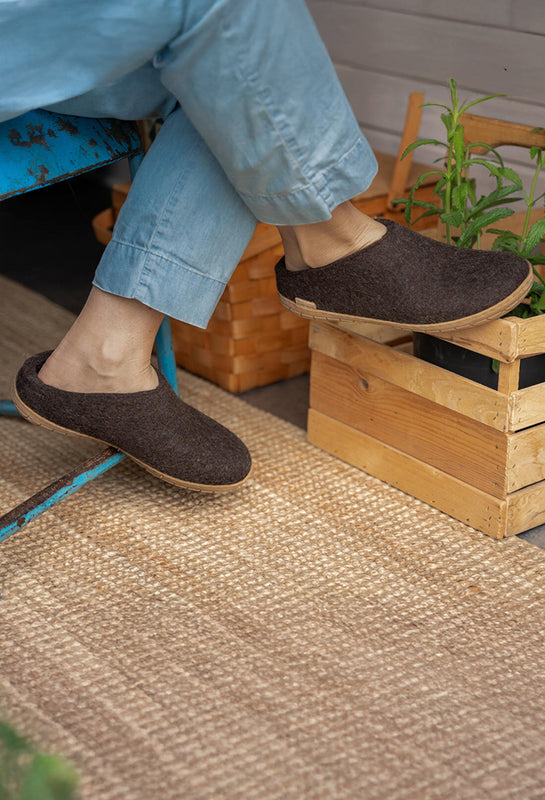 Tøffel med skindsål - Koksgrå